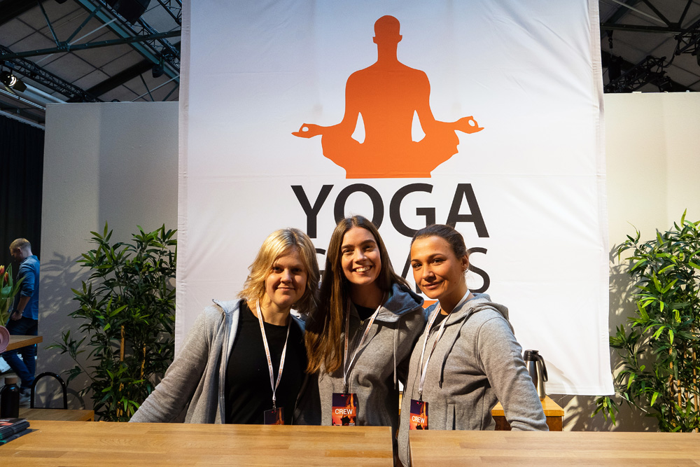 Mellan yogaklasserna minglar du i uppskattade Hälsomässan där du välkomnas av härliga utställare.